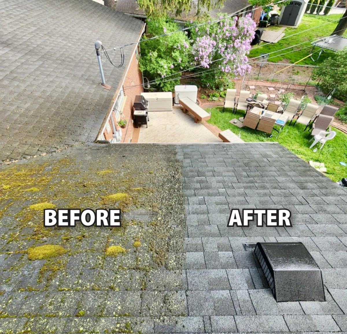 Over time, roofs collect moss, algae, and grime that hold moisture and cause damage. We use low-pressure soft-washing or specialist scrubbing methods to clean safely — without harming tiles or seals.